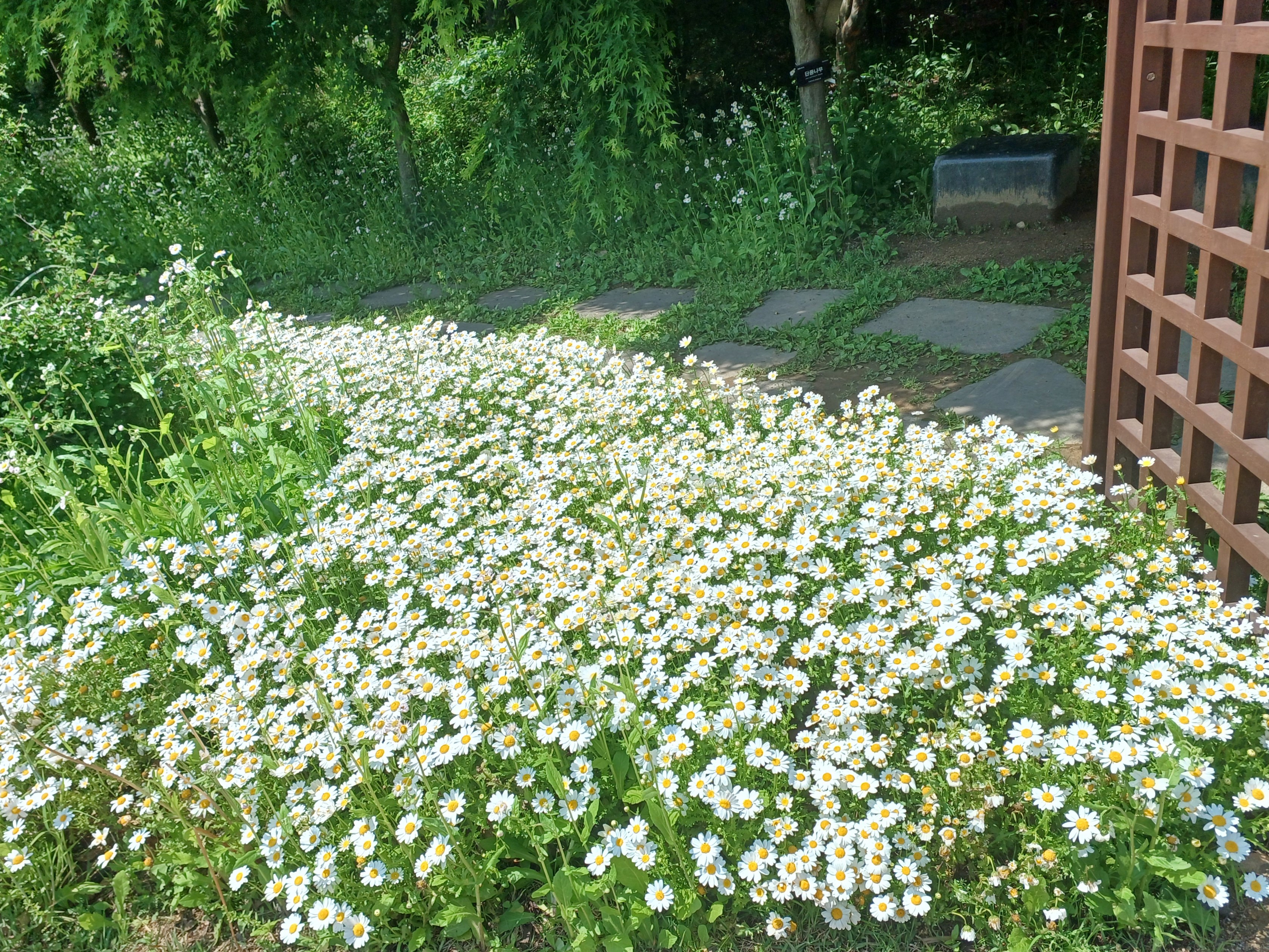 수백 송이의 마가렛이 흐드러진 작은 산책로였습니다.