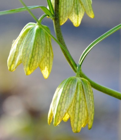 중국패모는 종 모양으로 아래를 향해 피는 꽃이 특징입니다.