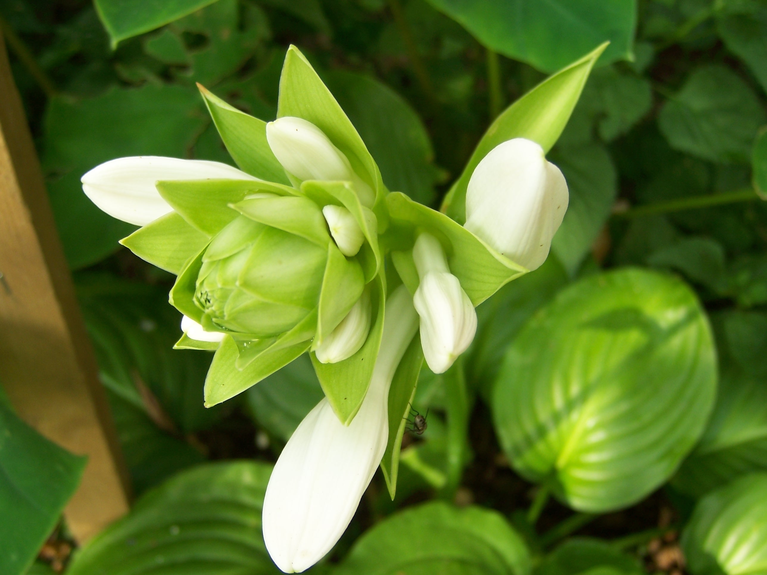 ▲ 흰색 꽃봉오리가 피는 옥잠화. 비비추와는 완전히 다른 종이다.