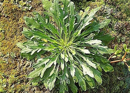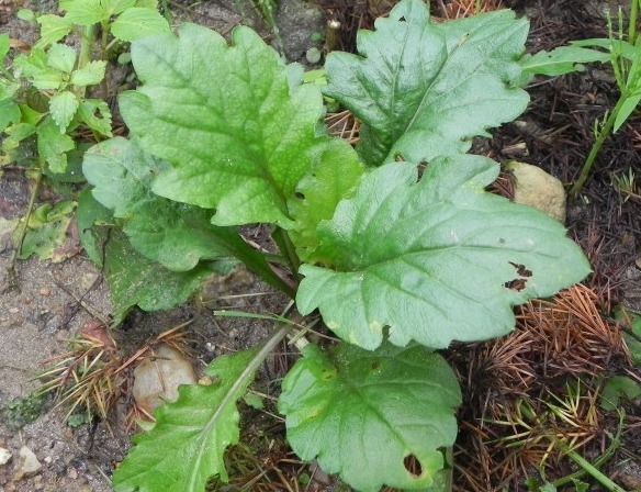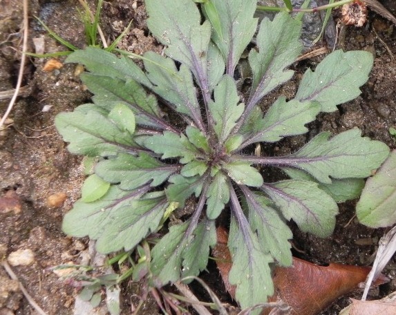 망초 뿌리 잎은 개망초에 비해 잎이 좁고 길며 보랏빛이 약간 돈다.