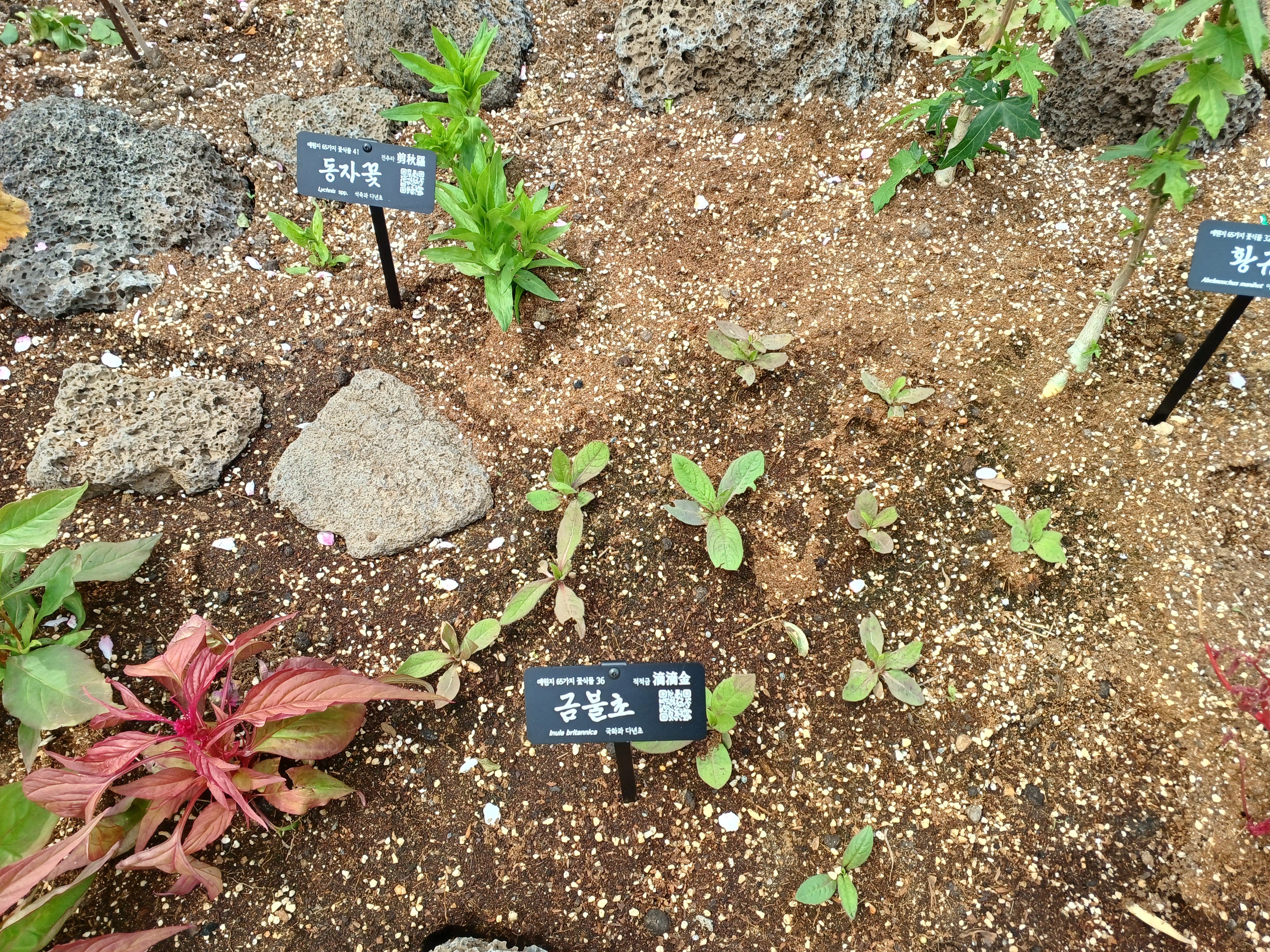 이 작은 공간에 65종의 식물이 식재되어 있습니다.